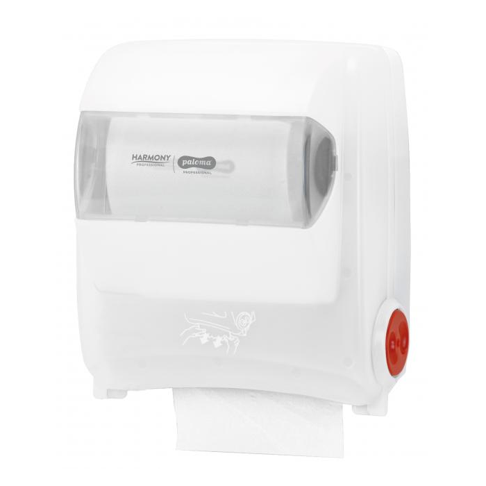 Zásobník HARMONY Professional AutoCut Mechanický systémový zásobník na stenu na miesta s vysokou frekvenciou návštev. Vyrobený z polypropylénu s prímesou Master Bio, ktorá urýchľuje čas biologickej odbúrateľnosti až o 99 %. Vhodný na role AutoCut obj.kód HY1653 00. Vždy dávkuje iba 1 útržok papiera, čo je úspora 30 % oproti bežným skladaným utierkam. Farba biela. Rozmery 40 × 36 × 24 cm.