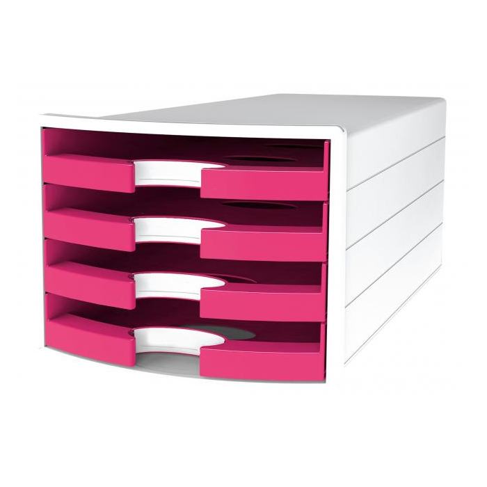 Box so štyrmi otvorenými zásuvkami v tvare počítačového monitora v trendových farbách. Rozmery (š × v × h) 294 × 235 × 368 mm. Farba ružová.