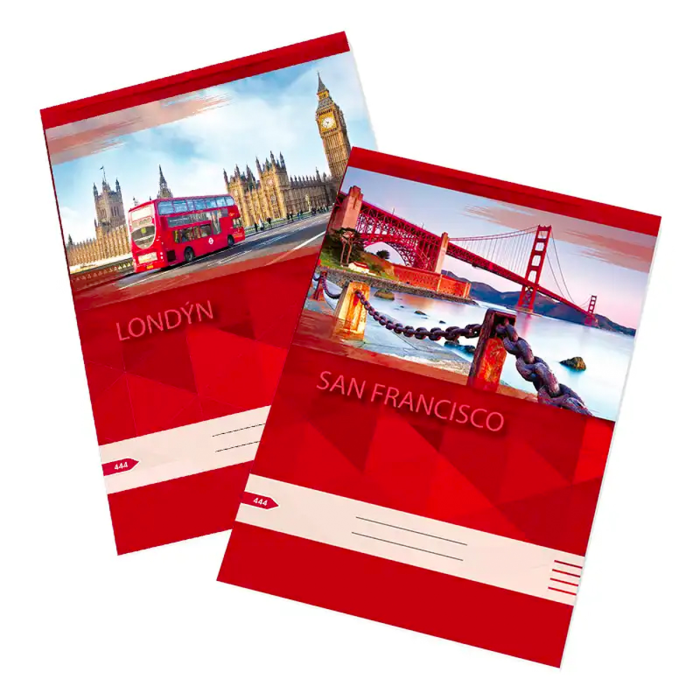 Veľký 40 listový zošit 444 s klasickými linajkami (8 mm) z hladkého bezdrevného papiera, pre základné a stredné školy, balený vo fólii po 10 ks.