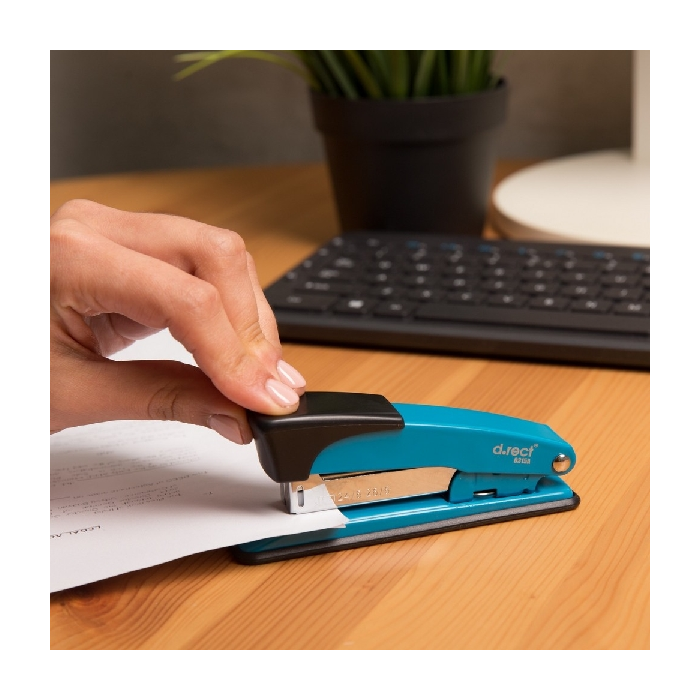 Funkčná kancelárska zošívačka. Užitočný pri každodennej práci, nenahraditeľný pri organizovaní a triedení dokumentov. Kovové puzdro s plastovými protišmykovými podložkami na ramene a základni. Maximálny počet zošitých hárkov: 30 Maximálna hĺbka vloženia hárkov: 50 mm Počet sponiek v zásobníku: 70 - veľkosť sponky: 24/6; 26/6 - dĺžka základne: 11,7cm - záruka 5 rokov - modrá farba.