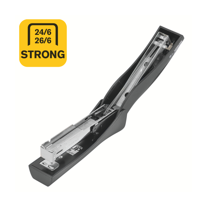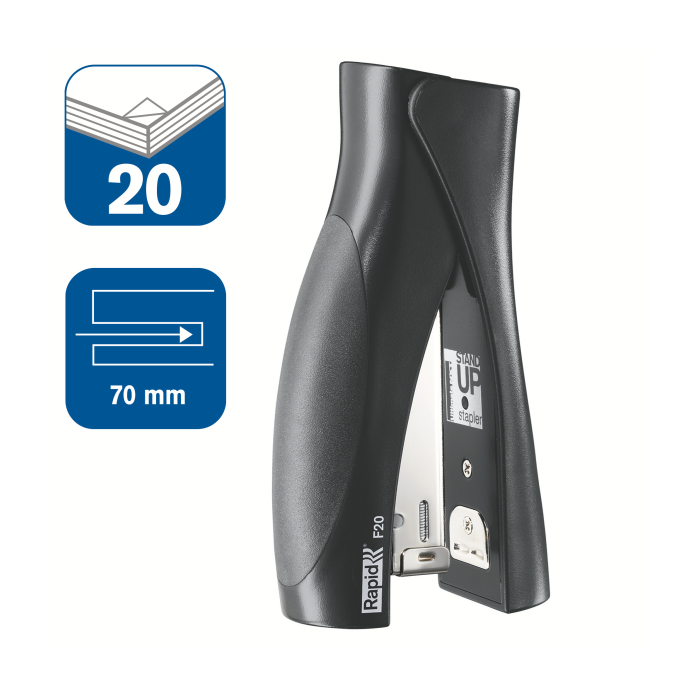 Vždy po ruke vo vzpriamenej polohe, perfektný výkon vďaka oceľovému mechanizmu a ergonomickej gumenej rukoväti. Ideálne pre domácnosť a kanceláriu.
