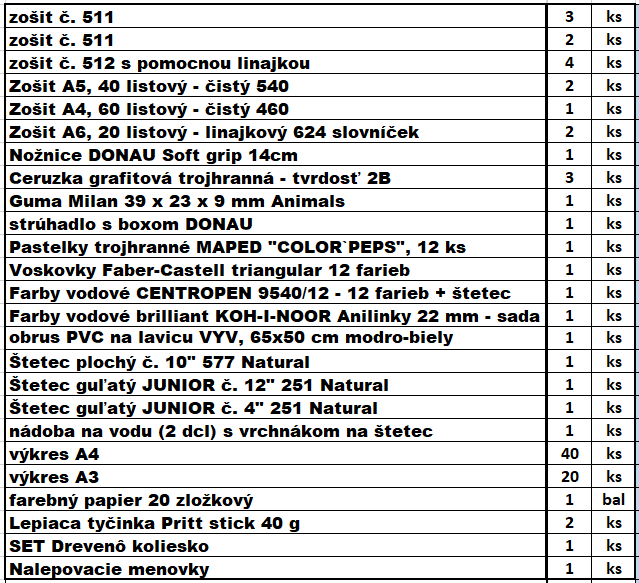 Sada zošitov a školských pomôcok pre 1. ročník základnej školy od chránenej dielne VISI a sociálneho podniku Drevenô koliesko